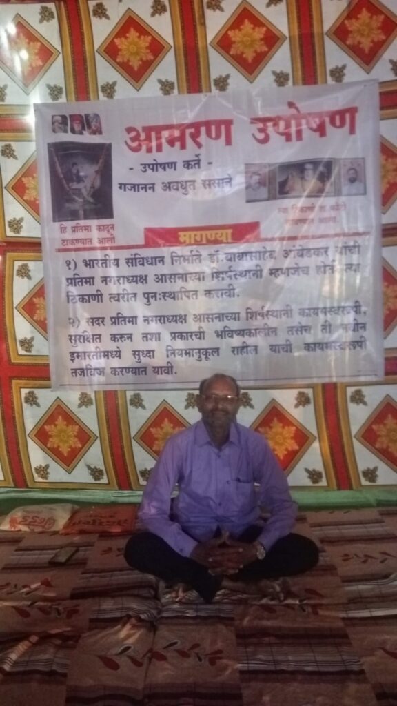 Breaking News, बुलढाणा BuldhanaDr. Babasaheb Ambedkar’s statue should be installed at the top of the restored Mayor’s seat. Gajanan Sasane’s fast unto death in front of the Municipal Council for the demand :डॉ. बाबासाहेब आंबेडकर यांची प्रतिमा पूर्ववत नगराध्यक्ष आसनाच्या शिर्षस्थानी स्थापित करावी Leave a Comment / Breaking News, बुलढाणा Buldhana / Team Mooknayak varta