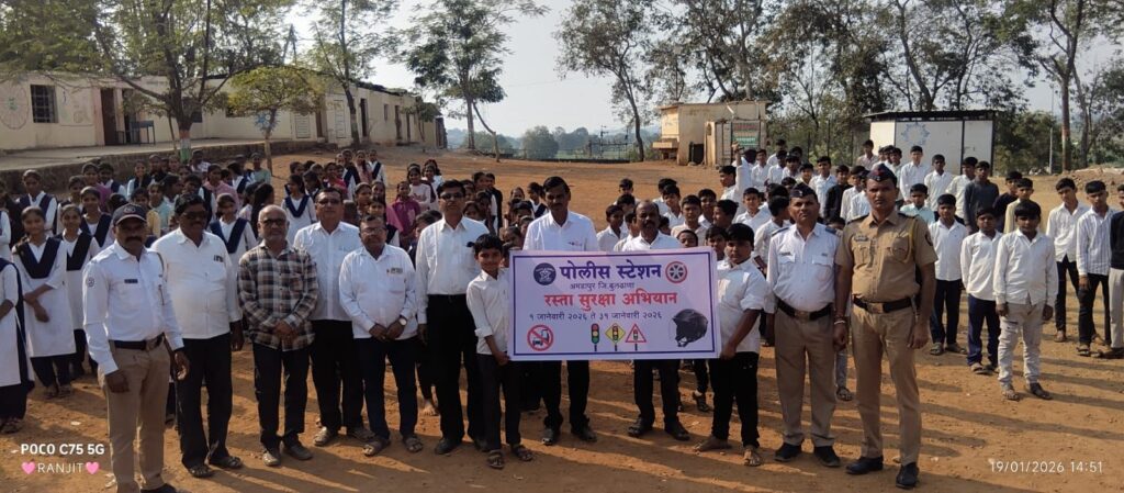 संपूर्ण जिल्ह्यात १ जानेवारी ते २६ जानेवारी दरम्यान रस्ता सुरक्षा अभियान राबविण्यात येत असून, त्याअंतर्गत विद्यार्थ्यांमध्ये वाहतूक नियमांबाबत जनजागृती केली जात आहे. यावेळी मार्गदर्शन करताना १८ वर्षांखालील मुला-मुलींनी वाहन चालवू नये, तसेच १८ वर्षे पूर्ण झाल्यानंतर वाहन चालवताना वैध परवाना (लायसन्स) असणे बंधनकारक असल्याचे सांगण्यात आले.