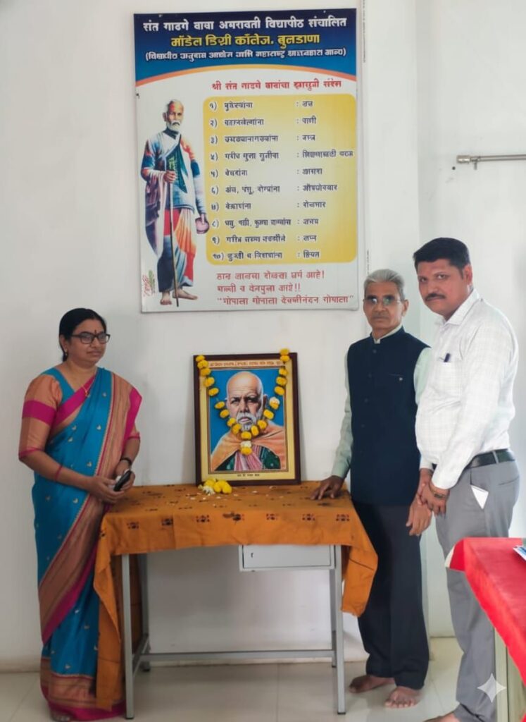 मॉडेल डिग्री कॉलेज, बुलडाणा येथे थोर समाजसुधारक, संत गाडगे बाबा यांच्या प्रतिमेस पुष्पहार अर्पण करून अभिवादन करण्यात आले.
