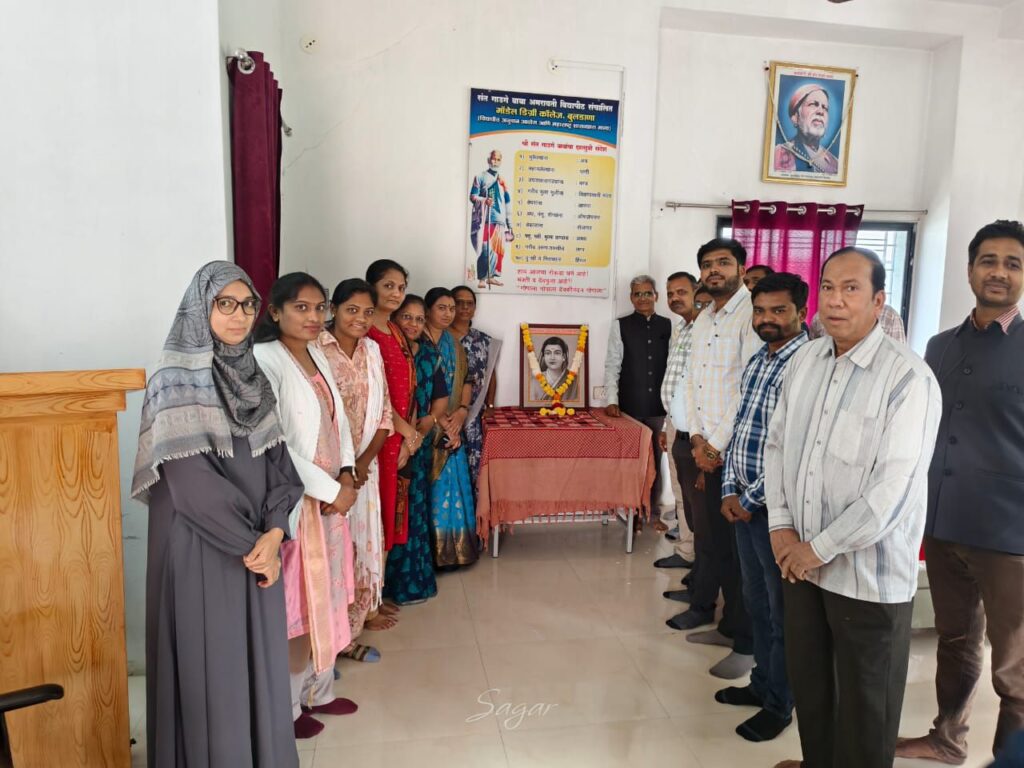 बुलडाणा :(प्रतिनिधी)स्थानिक मॉडेल डिग्री कॉलेज, बुलडाणा येथे दि. ३ जानेवारी रोजी क्रांतीज्योती सावित्रीबाई फुले यांच्या प्रतिमेला पुष्पहार अर्पण करून अभिवादन करण्यात आले.